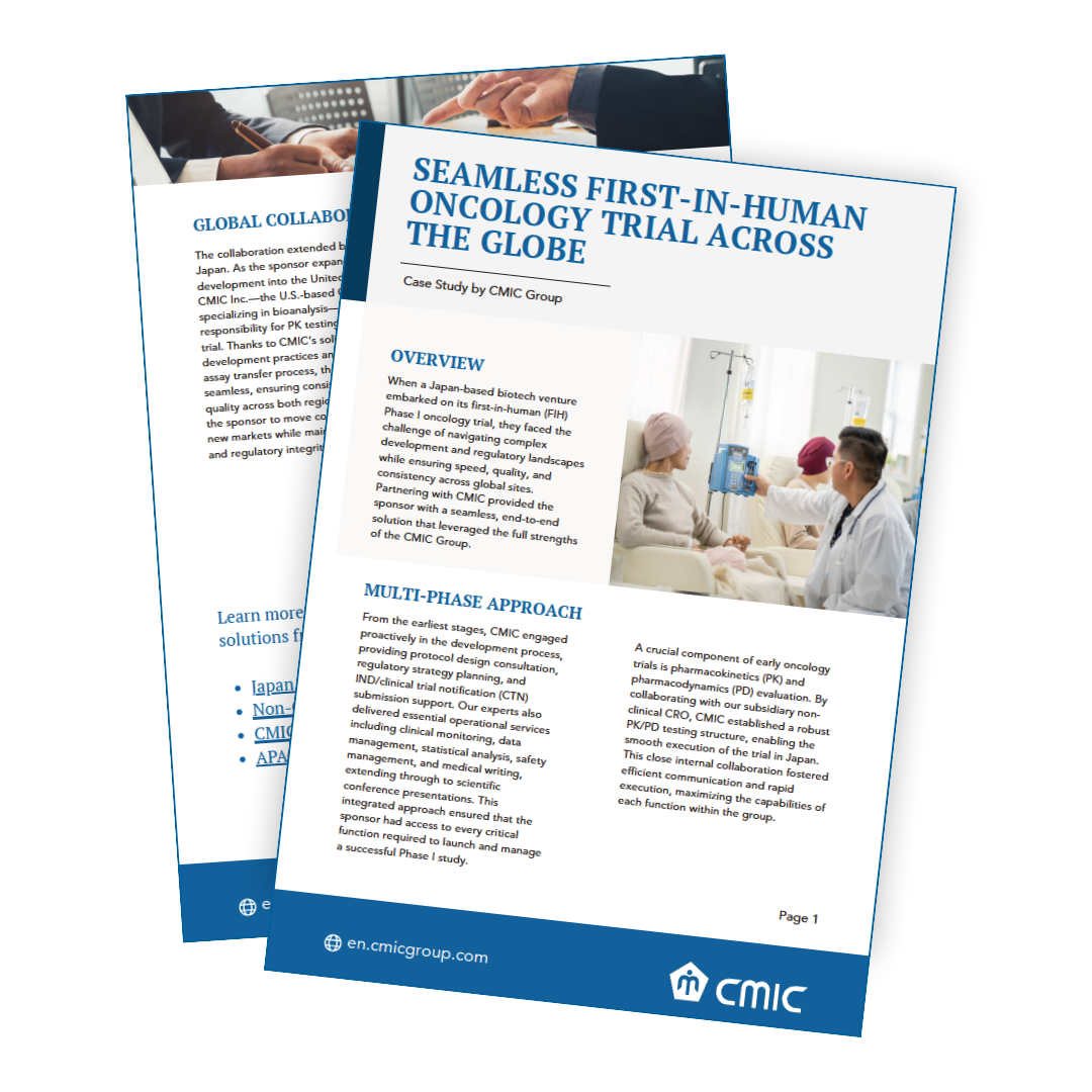 Discover how a Japan-based biotech successfully navigated its first-in-human oncology trial by partnering with CMIC.